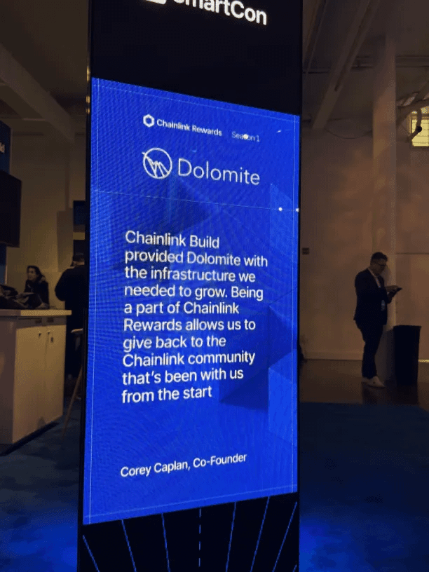 O COO da Dolomite @adam_knuckey subiu ao palco na SmartCon para o lançamento da Chainlink Rewards Temporada 1 ao lado dos principais projetos BUILD que lideram a próxima fase do programa.