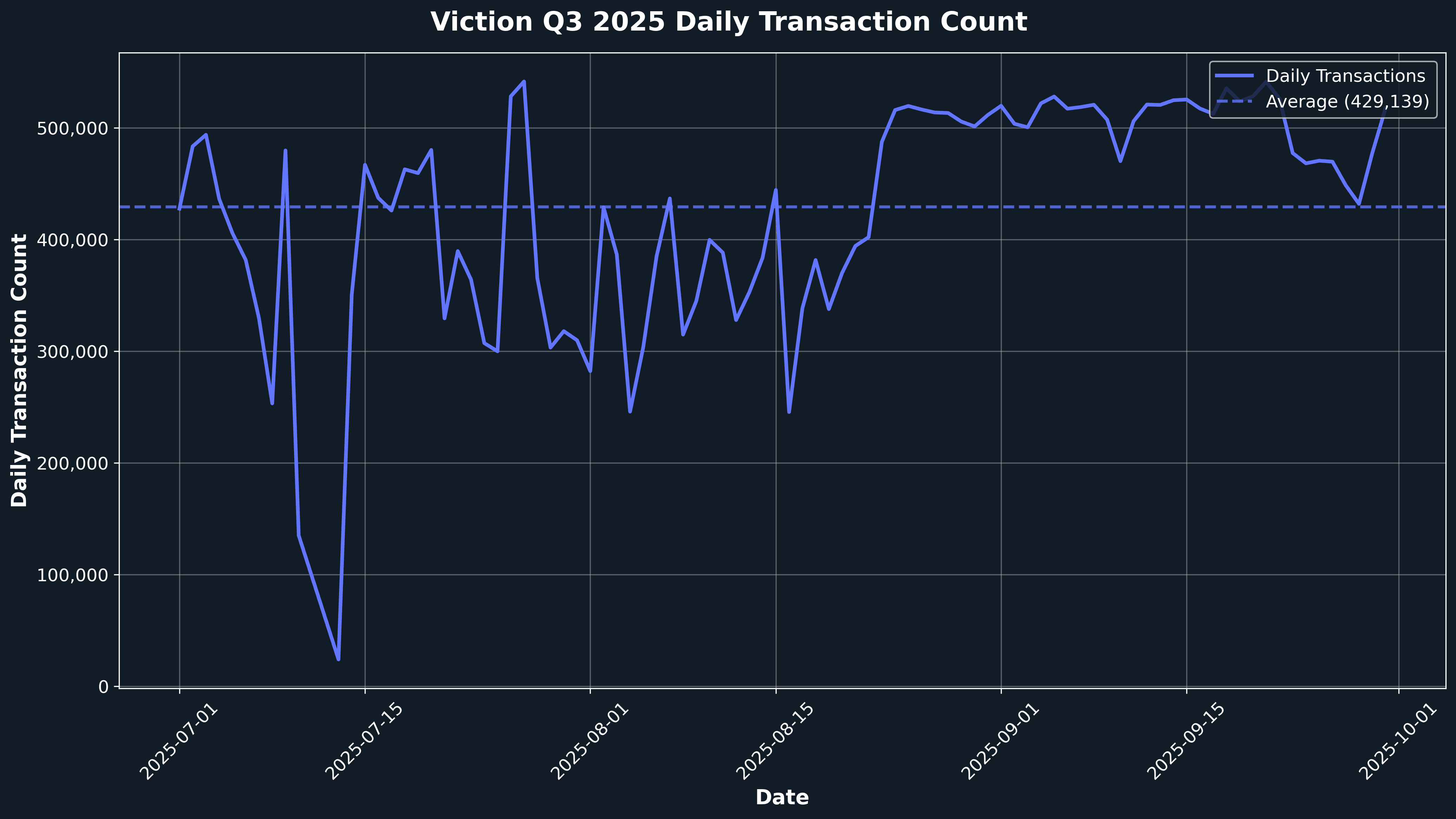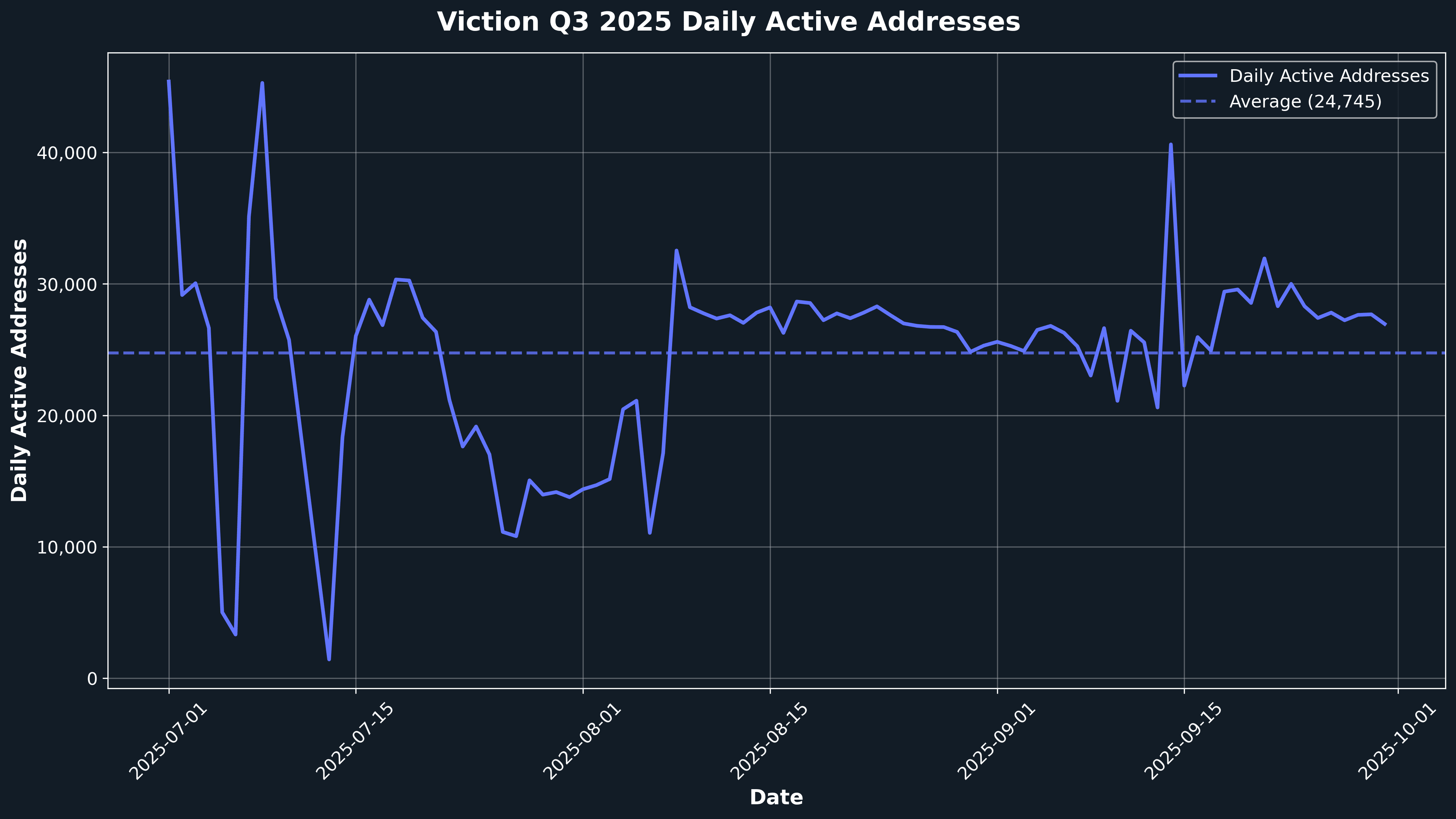 O Q3 2025 reafirmou a força da Viction como uma blockchain Layer-1 rápida e com zero taxa de gás: as transações diárias tiveram uma média de 429.139, com picos alcançando 541.525, enquanto os endereços ativos mantiveram uma média saudável de 24.745, refletindo a demanda duradoura por sua infraestrutura de alto desempenho. O rollout bem-sucedido do Atlas Hard Fork, a distribuição da Retrodrop Temporada 2 liderada pela comunidade de 2.5M VIC e a expansão do Programa de Embaixadores para mais de 150 embaixadores em mais de 10 países demonstram um modelo de governança em maturação e um claro compromisso de longo prazo com criadores e construtores.