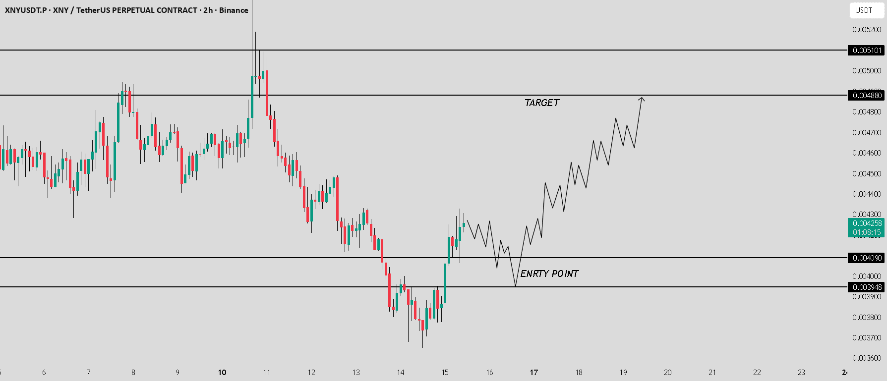 XNY / USDT está mostrando um forte potencial para uma continuação de alta em direção a $0.004880.