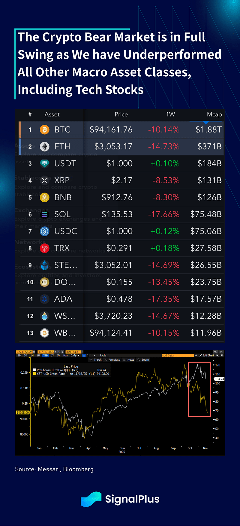 Os preços das criptomoedas vacilaram novamente na semana passada, com o BTC tocando $94k após uma venda leve na segunda-feira, com os principais ativos caindo mais 10–20% em uma base semanal, e o sentimento nativo tão pessimista quanto nunca, incluindo os mercados em baixa anteriores. Embora os ventos macroeconômicos possam ser desculpados por impulsionar parte da venda, as criptomoedas realmente tiveram um desempenho inferior à maioria das outras classes de ativos, incluindo ações de tecnologia alavancadas, com as quais estiveram mais correlacionadas.
