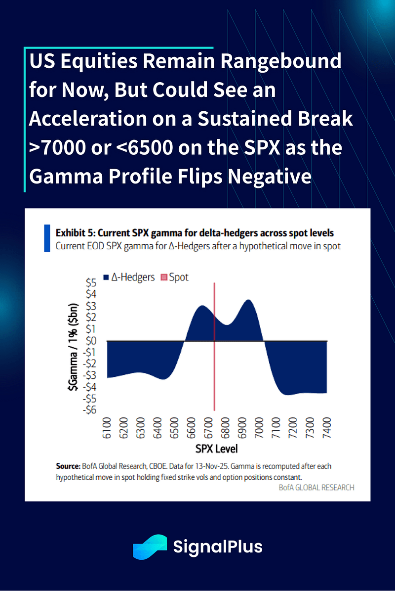 3. As Ações dos EUA Permanecem Limitadas por Enquanto, Mas Poderiam Ver uma Aceleração em uma Quebra Sustentada >7000 ou <6500 no SPX à medida que o Perfil Gamma Se Torna Negativo.