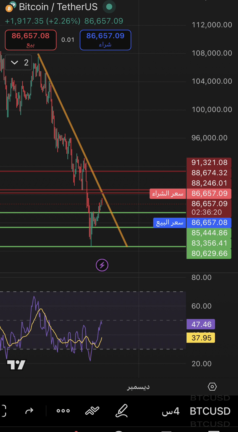 Esta área representa um ponto de equilíbrio para o mercado; acima dele, o cenário tende a ser positivo, visando resistências de 88,674$ e depois 91,321$.