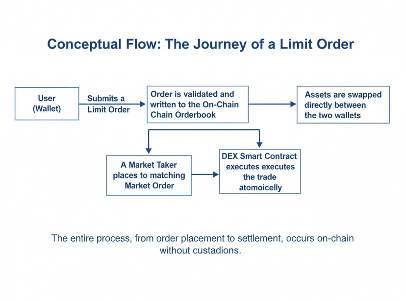 Em um DEX de Livro de Ordens Nativo como Helix: Você simplesmente faz uma ordem limitada para comprar ETH a $3.200. Você vai dormir. Se o mercado cair para o seu preço, sua ordem será executada automaticamente, exatamente como instruído. Se não, você não perdeu nada. Você apenas automatizou sua estratégia.