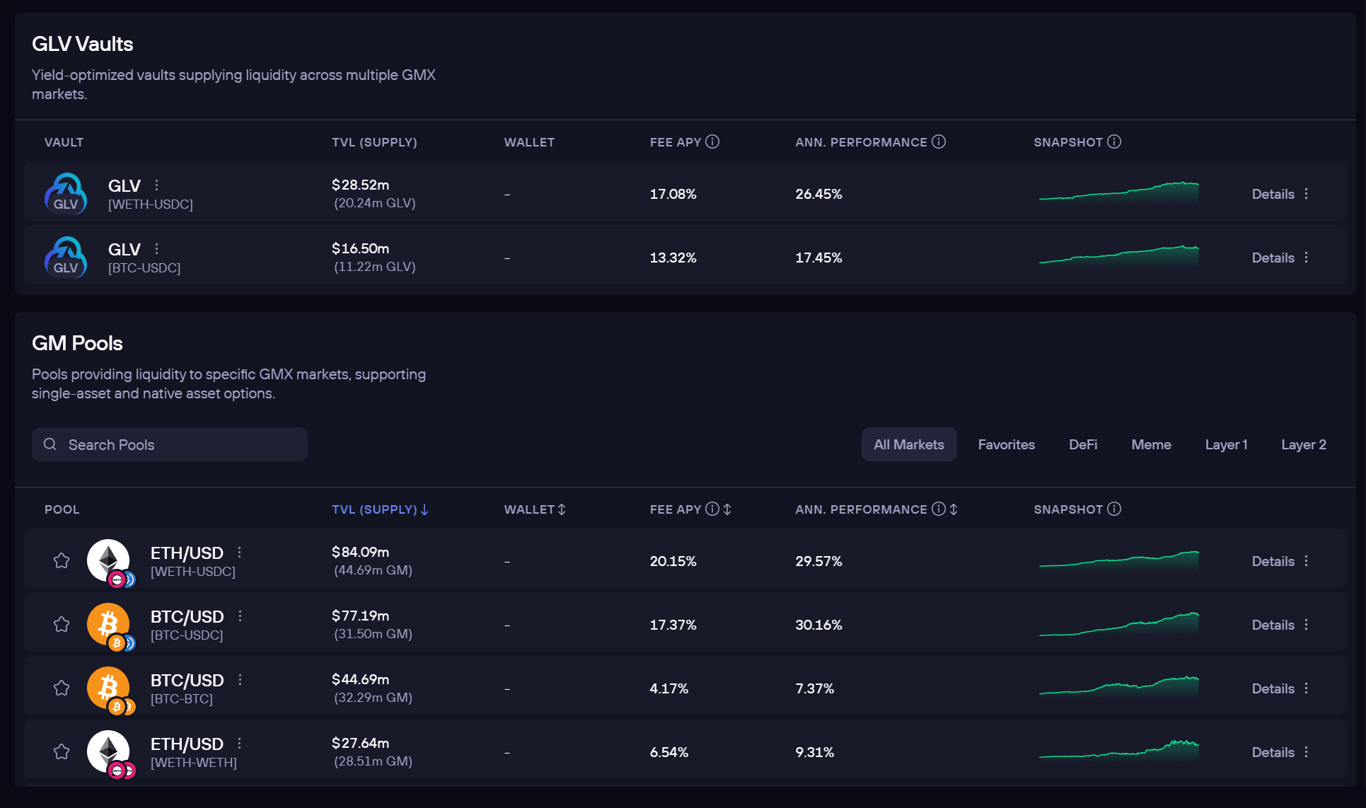 Suas recompensas LP se acumulam automaticamente de forma contínua, aumentando o preço dos seus tokens GM ou GLV.