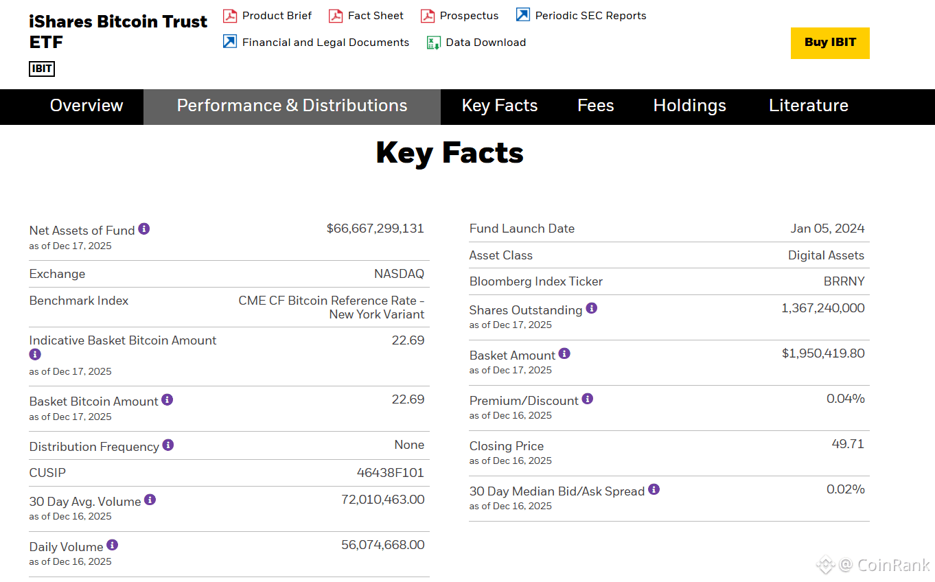 More importantly, the significance of Bitcoin ETFs goes far beyond improved investment convenience. According to BlackRock’s official product Key Facts, as of December 17, 2025, the iShares Bitcoin Trust (IBIT) had approximately USD 66.67 billion in net assets. This scale alone clearly demonstrates that institutional capital is continuously entering the market via Bitcoin ETFs. Bitcoin ETFs are accelerating Bitcoin’s transition from an “alternative speculative asset” to an “institutionally allocable financial asset,” fundamentally reshaping global capital’s long-term perception and allocation logic toward Bitcoin.
