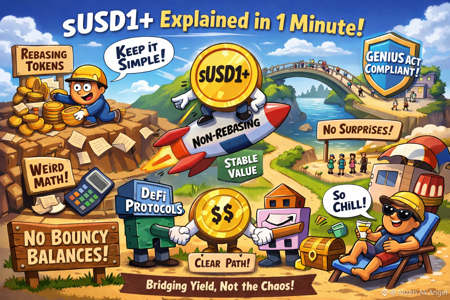 Here’s sUSD1+ explained in one minute. Some yield tokens “rebase”: your wallet balance increases over time, while the token aims to keep a steady unit value. Origin’s documentation describes this model plainly—balances rise like interest in a bank account. sUSD1+ takes the other route. It’s non-rebasing: your balance stays fixed, while the redemption value per token increases as the strategy earns, so yield shows up as price appreciation rather than extra units. That’s the core design choice people are reacting to, because it changes how the token fits into everything else.