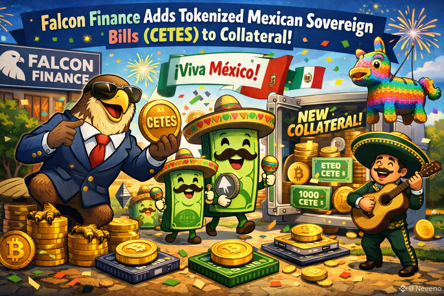 @Falcon Finance For much of the last decade in crypto, the conversation about collateral backing stable assets has lived almost exclusively in a very narrow corner: U.S. dollar-linked instruments and major cryptocurrencies like Bitcoin and Ether. People talked about diversification, sure, but most systems stayed within what felt familiar and safe. That’s why something as seemingly small as Falcon Finance’s recent announcement the introduction of tokenized Mexican sovereign bills, known as CETES, into its multi-asset collateral base feels worth paying attention to today. It isn’t flashy. It doesn’t promise overnight riches. But it does signal a shift in how decentralized finance is thinking about real-world links, risk, and inclusion.
