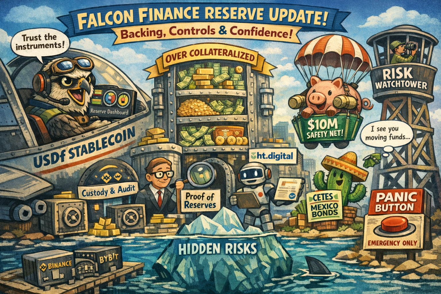 O sinal mais forte que a Falcon está tentando enviar é que partes externas estão verificando o trabalho com frequência, não apenas quando é conveniente. Em junho de 2025, a Falcon anunciou uma colaboração com a ht.digital para fornecer uma garantia independente de prova de reservas, com um painel oferecendo atualizações frequentes de reservas e relatórios de atestação trimestrais planejados para avaliar a suficiência das reservas, integridade dos dados e controles. As comunicações de transparência da Falcon descreveram mais tarde atestações semanais de reservas e relatórios de garantia trimestrais como parte do conjunto. Se você leu páginas suficientes sobre reservas nesta indústria, sabe quão raro é ver uma cadência claramente definida.