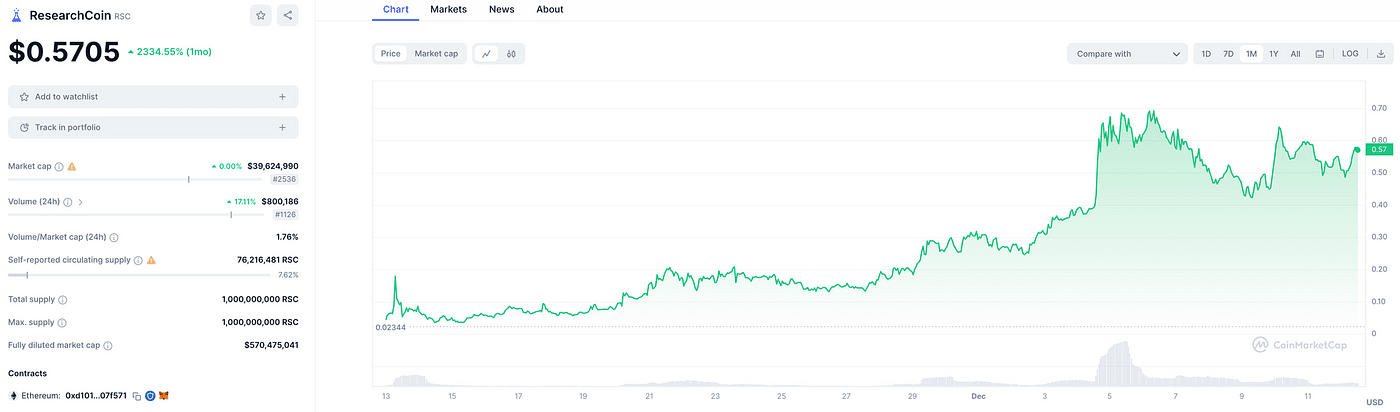 As atividades no ResearchHub podem render recompensas ResearchCoin (RSC), uma criptomoeda ERC-20 emitida na plataforma Ethereum para pesquisa científica. O RSC tem como objetivo incentivar a comunidade científica a compartilhar, revisar e fazer a curadoria de informações. Os usuários podem ganhar recompensas RSC ao: