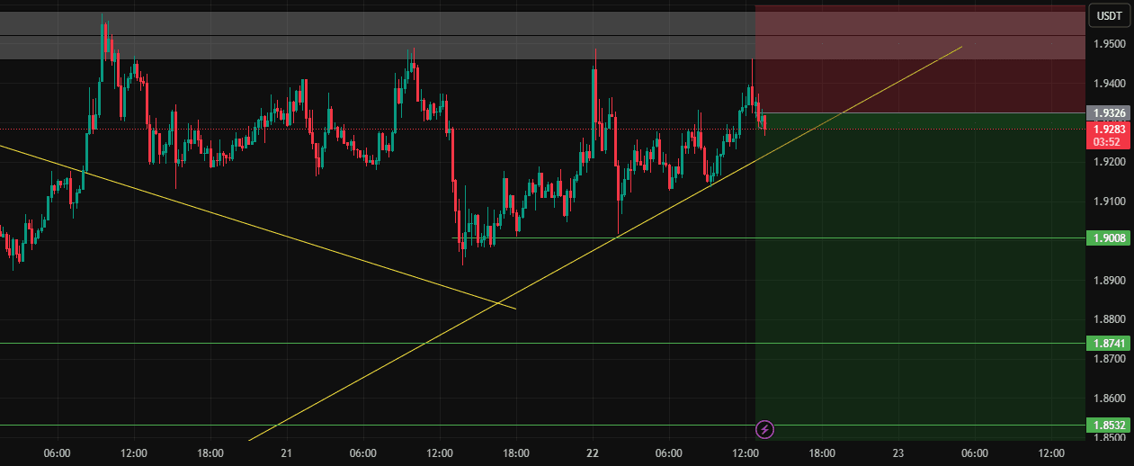 Uma quebra limpa abaixo do TP1 (1.9011) provavelmente acelerará o momento de baixa em direção a zonas de suporte mais profundas.