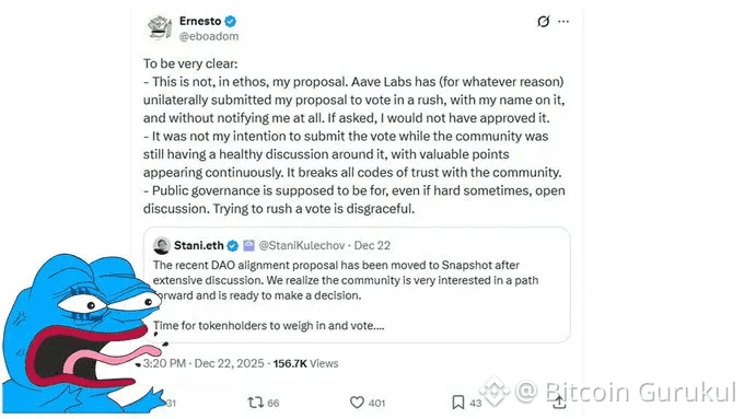 So here's the tea: Things got seriously heated in the Aave community. Ernesto from bgdlabs just called out Aave Labs publicly, and I mean really called them out. Apparently, his governance proposal about brand asset control got rushed to a Snapshot vote without him even knowing about it. Yeah, you read that right—without his approval or knowledge.