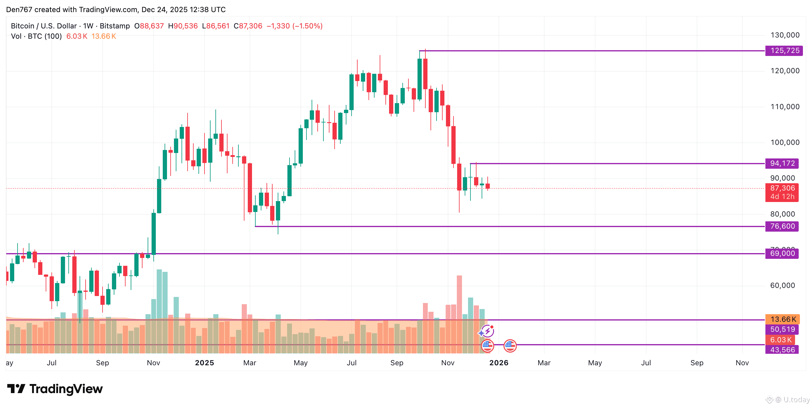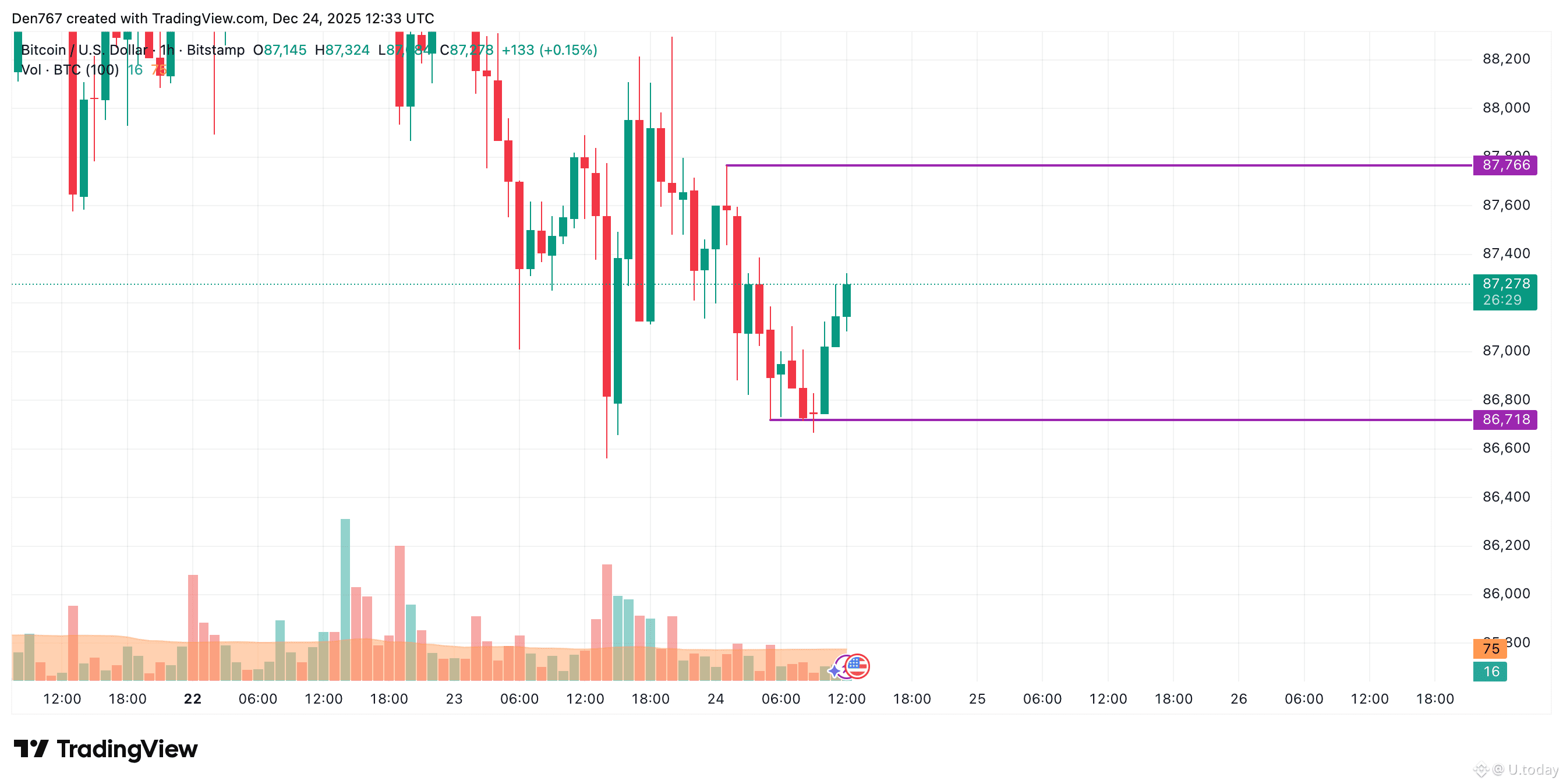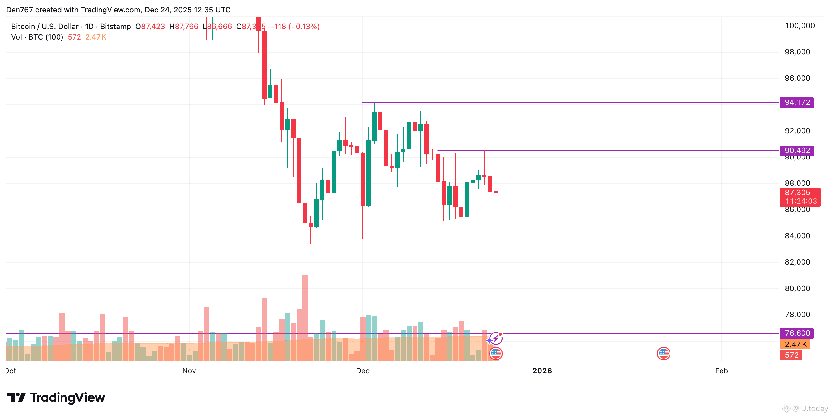 Bitcoin is trading at $87,306 at press time.