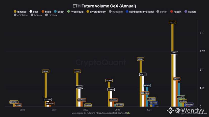 More than $6.74T in ETH futures volume was traded there over the year, nearly double that of 2024, which was already a historical record.