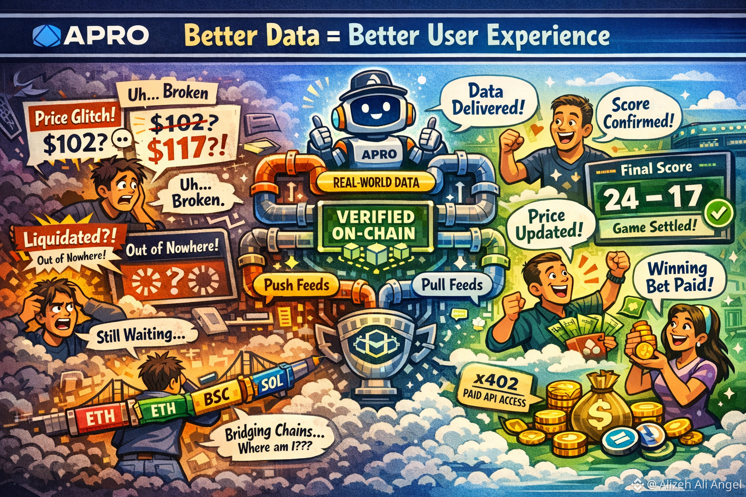 @APRO Oracle The easiest way to lose someone in a Web3 app isn’t a scary warning banner or a confusing wallet prompt. It’s a quiet moment when the numbers stop feeling believable. A price that lags what the user just saw elsewhere. A lending position that gets liquidated “out of nowhere.” A market that won’t settle even though the match ended hours ago. Users rarely say “your oracle failed.” They say the app is broken, or they say nothing and never come back. Data is invisible until it isn’t, and in late 2025 it has become hard to ignore because so many products now sit on top of each other. One weak data dependency doesn’t just hurt one dApp; it can spill into every place that dApp plugs into.