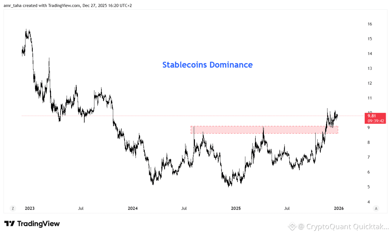 📌 Since mid-November, stablecoins dominance has broken above 9% and stayed stable above this level.