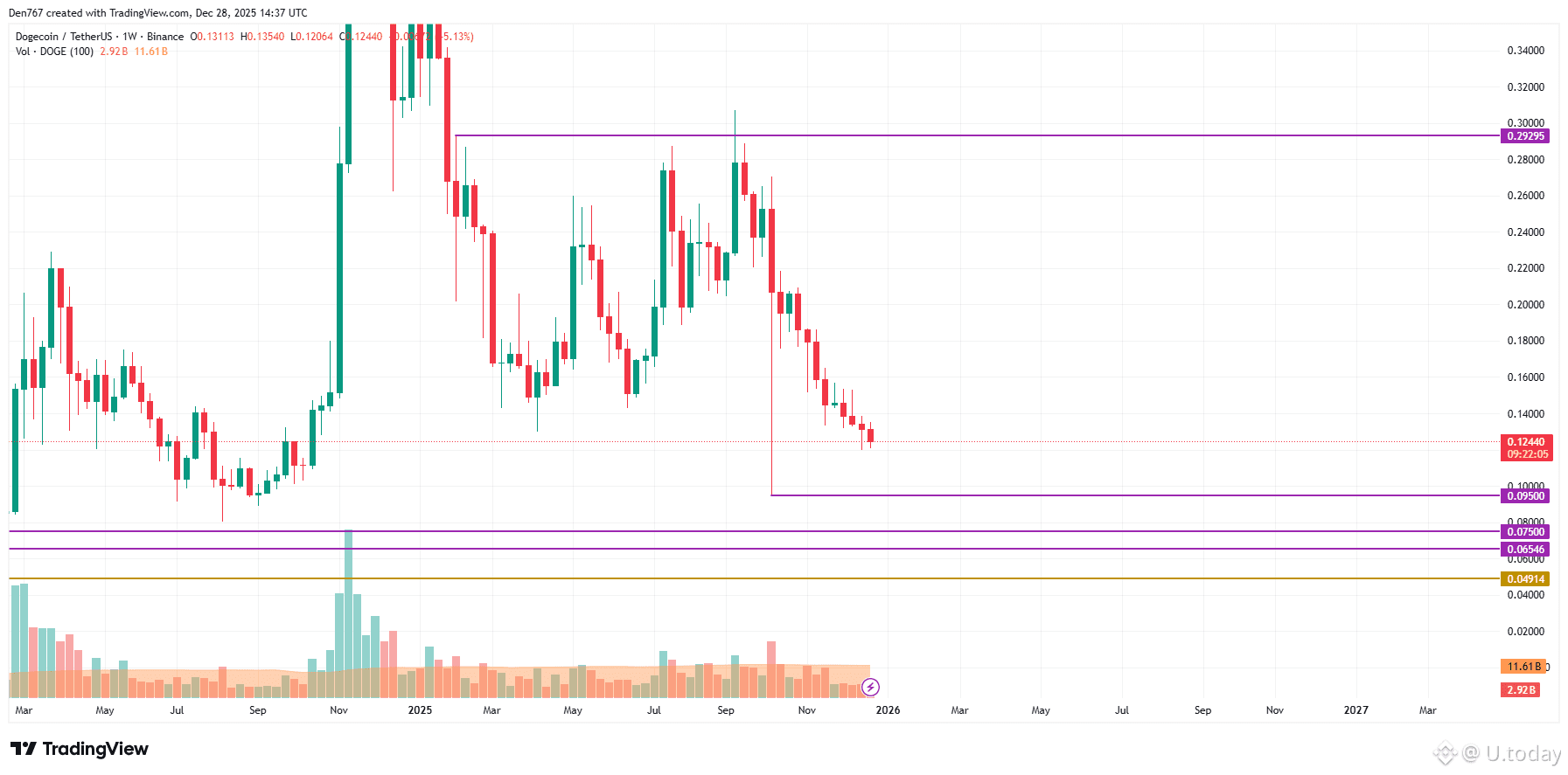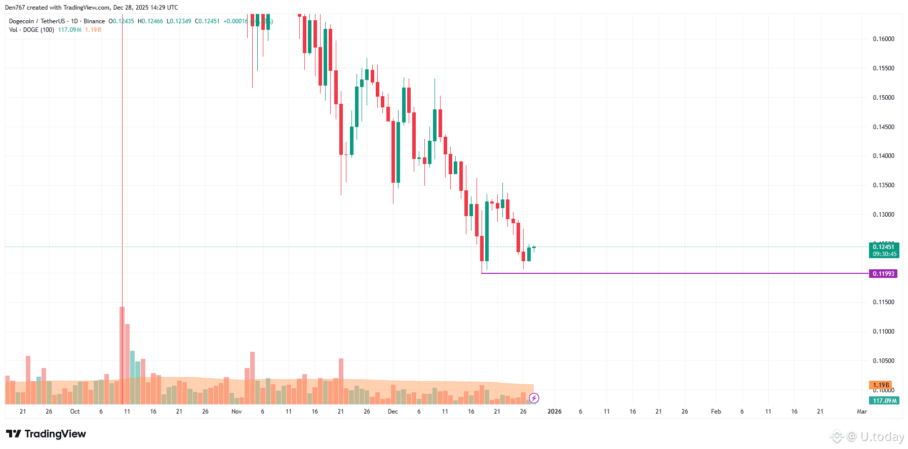 DOGE is trading at $0.1245 at press time.