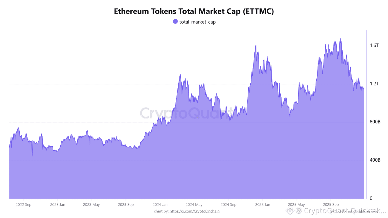 This 31.5% decrease has fundamentally altered the relative weight and volume of Ethereum tokens within the broader crypto landscape. While the capital currently parked in this sector ($1.15T) remains substantial, it has distanced significantly from its peak levels. This status suggests that investors are liquidating assets and currently show less inclination to store value in these tokens.