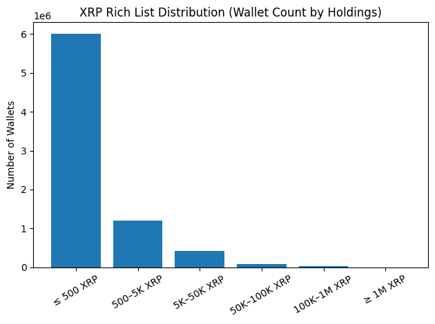 Existem milhões de carteiras, mas a maioria detém quantias muito pequenas. Mais de 6 milhões de carteiras possuem 500 XRP ou menos. �