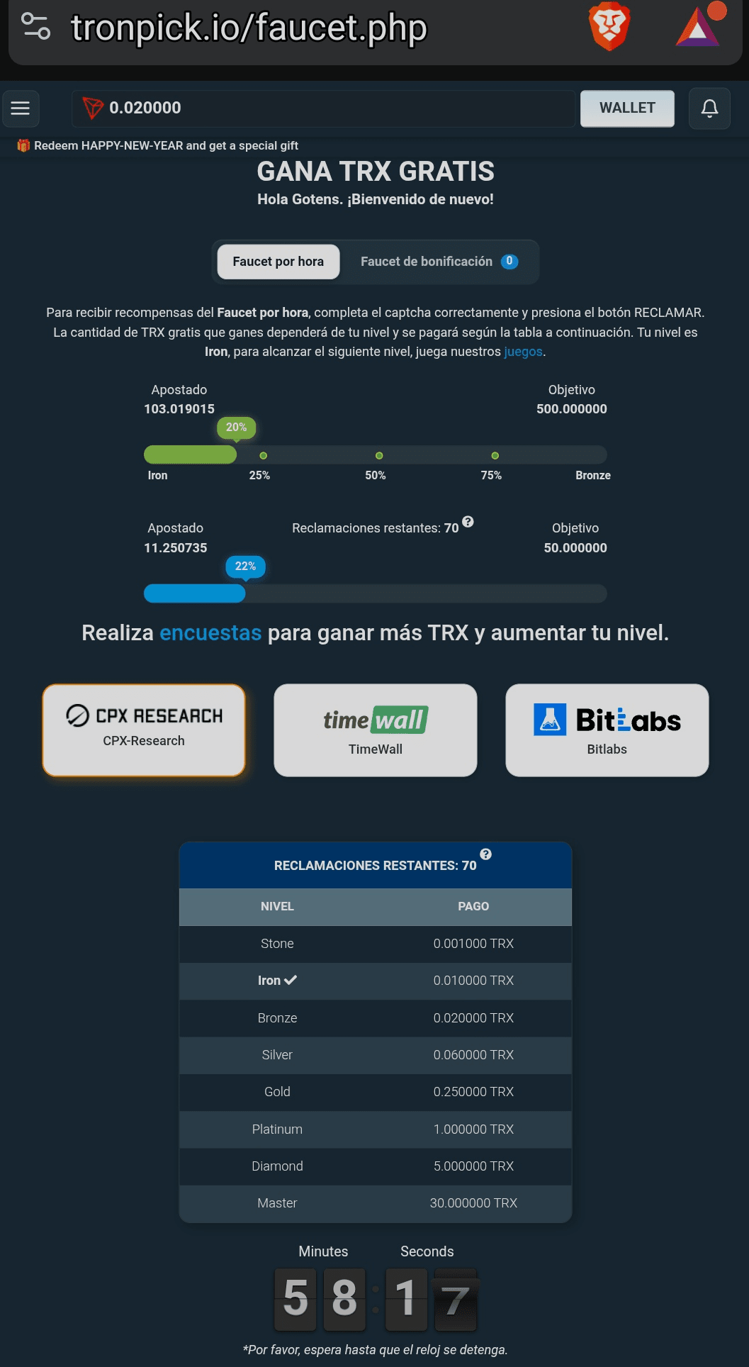 RECLAME GRÁTIS 0.001 TRX/HORA (0.00028 USDT/HORA) AQUI
