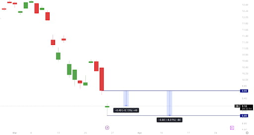 O preço das ações do banco caiu para uma mínima diária de cerca de ~$8,85, aproximadamente 8,31% em relação ao fechamento das negociações na quinta-feira. No momento da redação, a ação viu algum alívio, voltando para cerca de $9. À primeira vista, pode não parecer tão ruim, 5-8% de queda, mas isso não é uma altcoin; é um dos maiores bancos da Europa, mas atualmente está sendo negociado como se fosse uma altcoin. Milhões de pessoas têm seus fundos em jogo apenas neste banco, além do efeito que qualquer sentimento negativo pode ter sobre outros bancos europeus. Desde o final de janeiro, $DB caiu mais de 30%, o que demonstra que isso não é um acontecimento de um dia; isso vem se acumulando há um tempo.