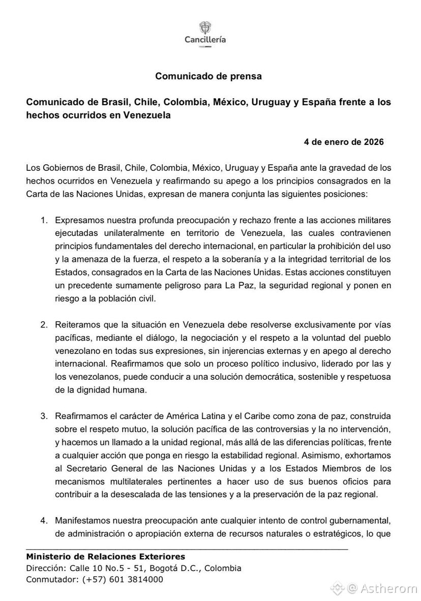 🇧🇷🇨🇱🇨🇴🇲🇽🇺🇾🇪🇸 Brasil, Chile, Colômbia, México, Uruguai e Espanha divulgam comunicado conjunto sobre a Venezuela.