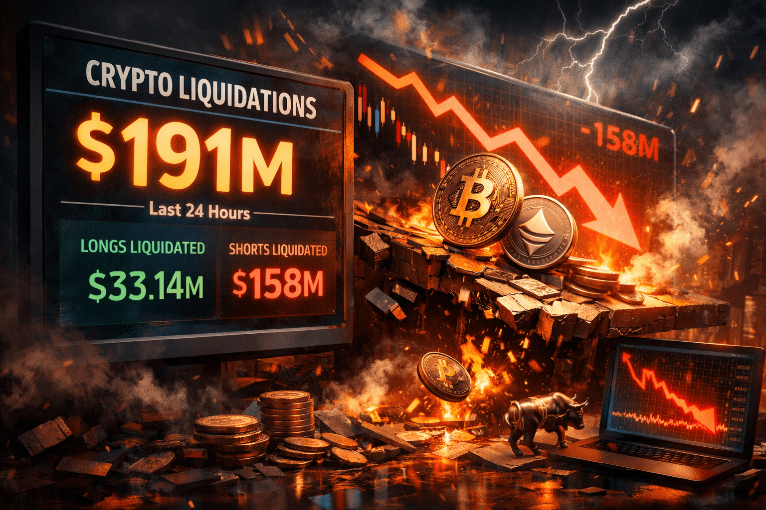 $BTC O mercado de criptomoedas experimentou uma onda aguda de volatilidade nas últimas 24 horas, desencadeando $191 milhões em liquidações totais, de acordo com dados compartilhados pela BlockBeats e originados da Coinglass.