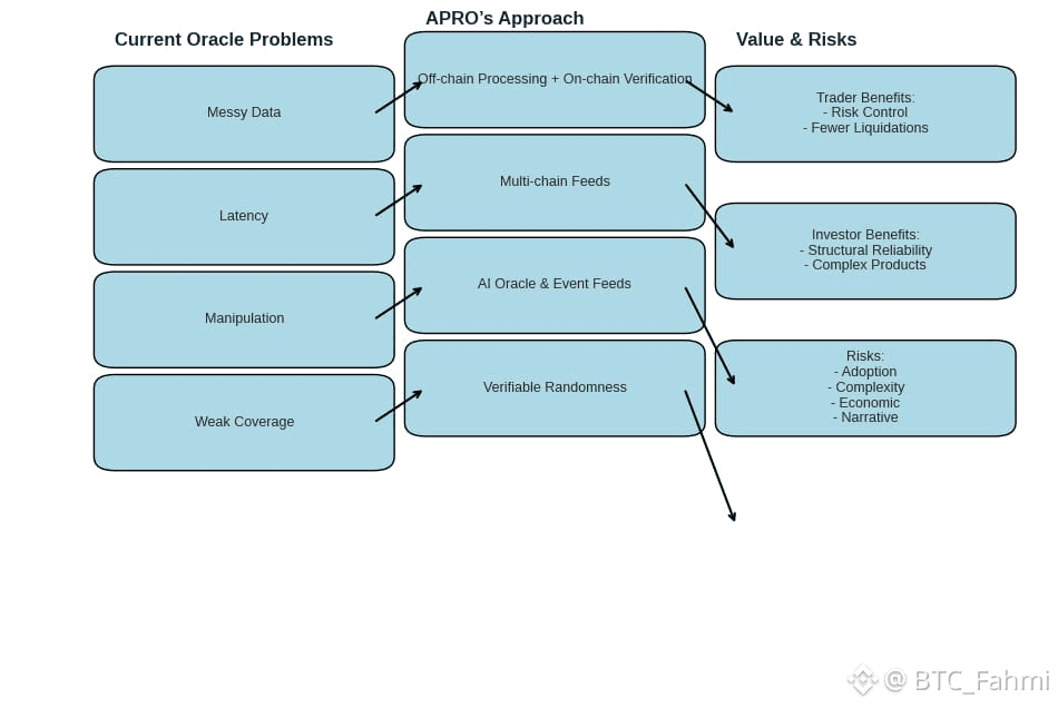 Most traders don’t think about oracles until something breaks. A price spikes for no real reason, a lending market starts liquidating healthy positions, or a “news-driven” bot trades on a headline that later turns out to be wrong. The uncomfortable truth is that a lot of on-chain activity still depends on data pipes that were built for simpler times. As the market gets faster and products get more complex, the oracle layer has to grow up too. That’s where APRO’s approach feels different, not because it promises magic, but because it is trying to treat “reliable intelligence” as infrastructure, not a feature.At its simplest, APRO is an oracle network that aims to deliver verifiable data to smart contracts. That sounds familiar, but APRO’s emphasis is on bridging two worlds that increasingly overlap: blockchain execution and AI interpretation. In APRO’s own documentation, the AI Oracle is framed as a way to deliver real time, verifiable, tamper resistant data that AI models and smart contracts can consume, with the explicit goal of reducing hallucinated or manipulated inputs. That wording matters because it admits a real problem: when data is messy, late, or selectively sourced, “intelligence” becomes a fancy word for guesswork.If you’ve traded through high-volatility events, you’ve probably felt this in practice. I remember watching a sharp move in a mid-cap token during a thin-liquidity window and seeing on-chain perps react as if the new price was fully confirmed reality. Later, when the broader market caught up, the move looked more like a temporary distortion than true price discovery. For a trader, that kind of distortion is more than noise. It can trigger liquidations, mess with funding, and create a chain reaction that punishes anyone using leverage. In those moments, the oracle is not just “data.” It is the referee.APRO’s model is built around combining off-chain processing with on-chain verification, which shows up repeatedly across ecosystem descriptions. The practical takeaway is that APRO is trying to do two jobs at once: gather information from the messy outside world, then prove enough about it on-chain that applications can rely on it. That second part is where many systems either become expensive, slow, or centralized. APRO’s pitch is that you can keep data fresh without compromising verification, and that the network design focuses on security and stability rather than raw speed at any cost. One detail traders often overlook is coverage. Reliability isn’t only about whether a feed updates quickly. It’s also about whether the data you actually need exists across the places you trade. APRO is described as supporting both push and pull data models and offering a large set of price feeds across many chains, which matters because multi-chain liquidity is now normal rather than special. If you’ve ever tried to price an asset that trades actively on one chain but has thin liquidity on another, you know how easily a single weak venue can distort the “on-chain truth.” The more robust the aggregation and the broader the network coverage, the harder it is for one pocket of liquidity to hijack the feed.The “growing up” part of the oracle layer, though, is not only about price feeds. It’s about richer data and richer reasoning. APRO’s roadmap highlights an evolution from core data infrastructure into AI oracle functionality, event feeds, validator nodes, verifiable randomness, and a consensus layer for its AI related message formats. For investors, this is the part that’s easy to misunderstand. It’s tempting to hear “AI” and assume it means prediction. APRO’s framing is closer to interpretation and validation: taking structured and unstructured data, processing it, and then making the result usable for contracts and agents without trusting a single party. A real-world example helps. Imagine an on-chain prediction market that settles based on an event outcome. In traditional setups, you either rely on a narrow set of data sources or accept a slow dispute process. APRO has described a focus on prediction market grade oracles and disclosed a strategic funding round aimed at powering next generation oracle infrastructure for those use cases. If APRO can make event resolution both verifiable and timely, it reduces the gap between “the world happened” and “the chain agrees it happened.” That gap is where manipulation lives.For traders, the immediate value is risk control. Better oracles can mean fewer bad liquidations, fewer broken perps, fewer weird cascades driven by stale or spoofed inputs. For investors, the value is more structural: reliable data enables more sophisticated financial products without quietly increasing systemic fragility. But it’s important to stay neutral here because nothing is guaranteed. Even the best oracle design faces hard problems: source selection, latency versus security tradeoffs, node incentives, and governance questions about what happens when the truth is contested.There are also clear risks to watch. First, adoption risk. Oracles are only as strong as the projects that integrate them, and switching oracle providers can be slow and politically complicated. Second, complexity risk. Adding AI processing and richer data types increases the number of things that can fail or be misunderstood, even if verification is strong. Third, economic risk. Node participation and security budgets depend on incentives, and token dynamics can impact long-term sustainability. Finally, narrative risk. When a sector gets crowded, the market sometimes prices stories faster than it prices real usage, and traders can end up holding volatility instead of fundamentals.Still, the broader trend is real: the market is moving from simple price updates to full “reliable intelligence” pipelines. APRO’s emphasis on verifiable, tamper resistant data for both smart contracts and AI agents is a sign of where the ora
