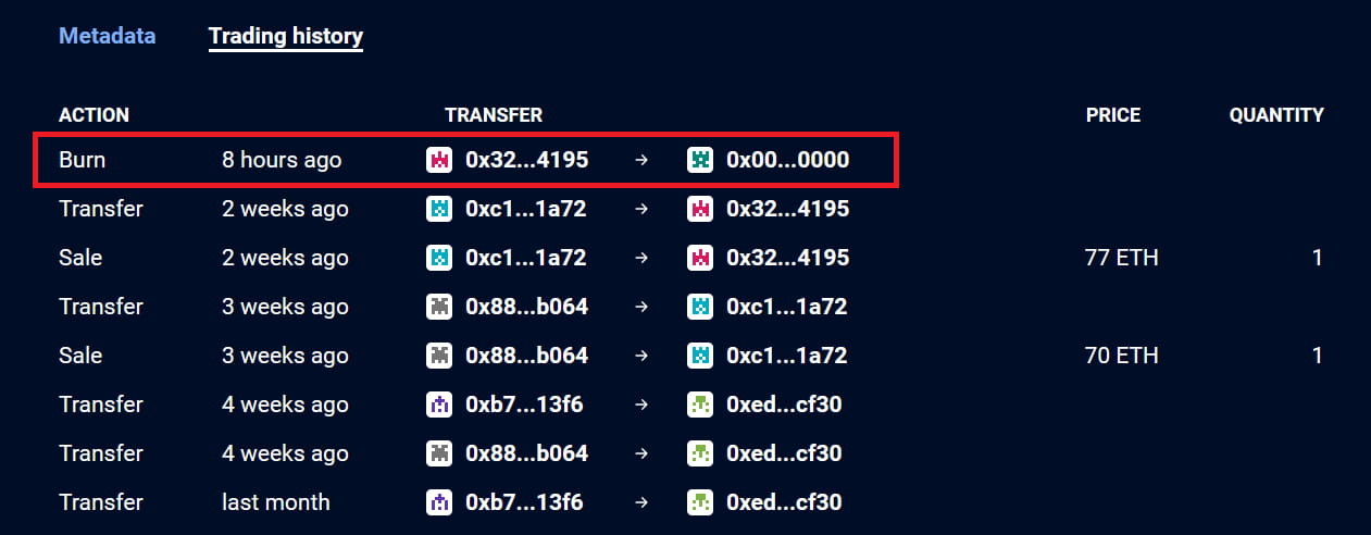 Um token não fungível da coleção CryptoPunks no valor de 77 Ether foi enviado para um endereço de gravação para ser destruído permanentemente. No entanto, o colecionador pretendia pedir algum dinheiro emprestado para comprar outro NFT.