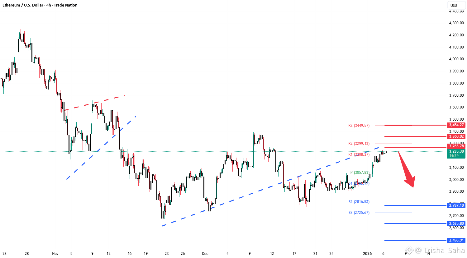 A confirmed breakout and daily close above 3,250 would invalidate the bearish setup.