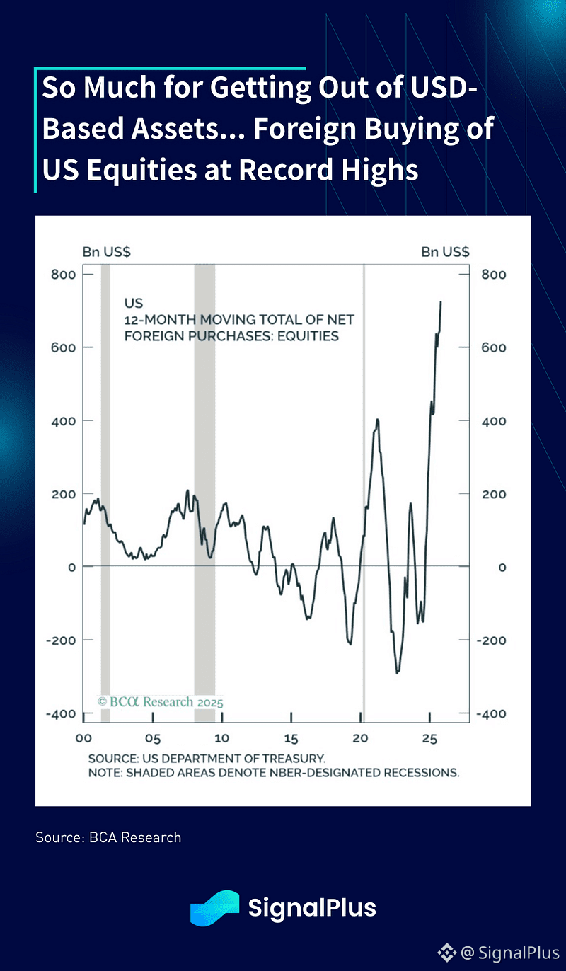 First, despite the incessant concerns over dollar debasement and capital flight out of US markets (ha!), 2025 ended up with the largest rolling 12-month foreigner buying of US equities in like… forever.