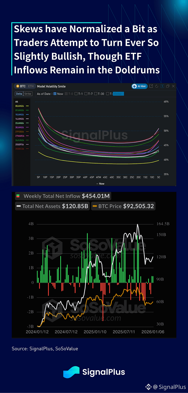 Call skews have improved in recent days, particularly against the $100k level as traders ever so slightly constructive on BTC, but remain guarded overall with ETF inflows remaining lackadaisical since November. Activity is quiet otherwise, as markets await a more convincing catalyst to shake us out of the 87–95k range that’s persisted since November. Good luck and good trading.