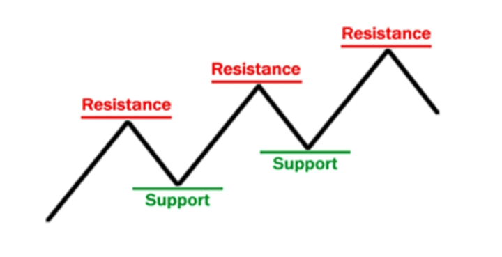 Suporte é um nível de preço onde o mercado geralmente para de cair e começa a subir. Resistência é onde o preço geralmente para de subir e recua. Esses níveis são muito importantes. Comprar perto do suporte e vender perto da resistência ajuda a reduzir o risco.