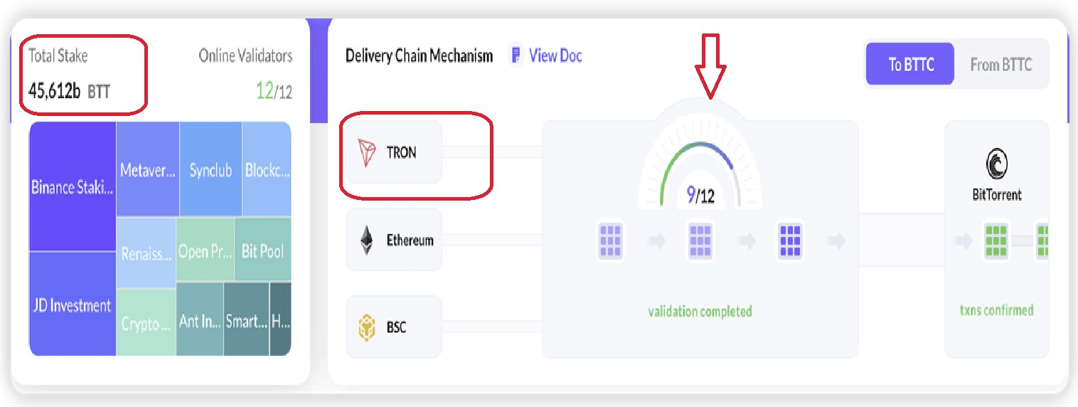 Quando você move ativos (como TRX, USDT ou BTT) de uma cadeia externa para o BTTC, o processo é seguro e verificável:
