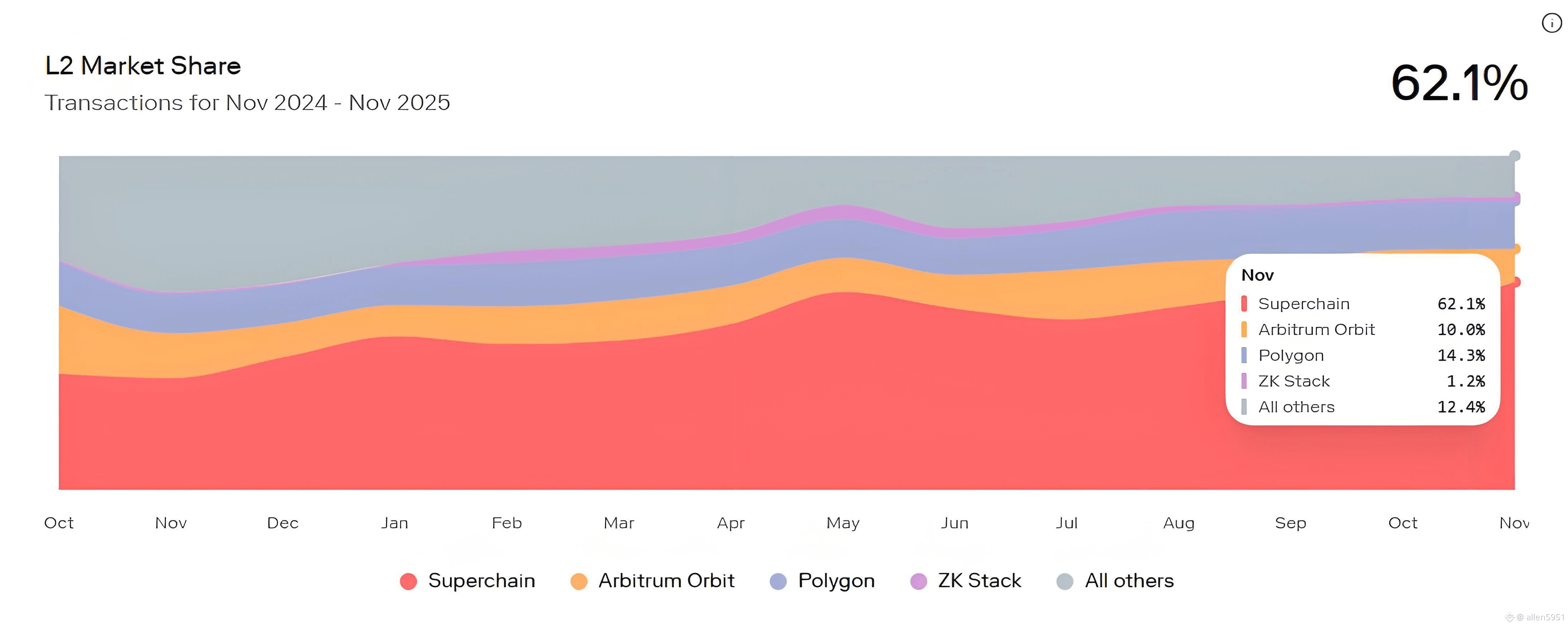 超级链目前已处理了全网约13%的加密货币交易量,并在Layer2手续费市场中占据61.4%的份额,且这一比例仍在持续上升。