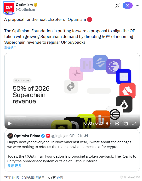 如果该提案获得通过,回购计划将于今年2月正式启动。这标志着$OP将从较为单一的治理代币,向与网络实际收入挂钩的价值载体转变。随着更多新链加入和交易量持续提升,回购资金基础将不断扩大,有望形成正向循环的“飞轮效应”。