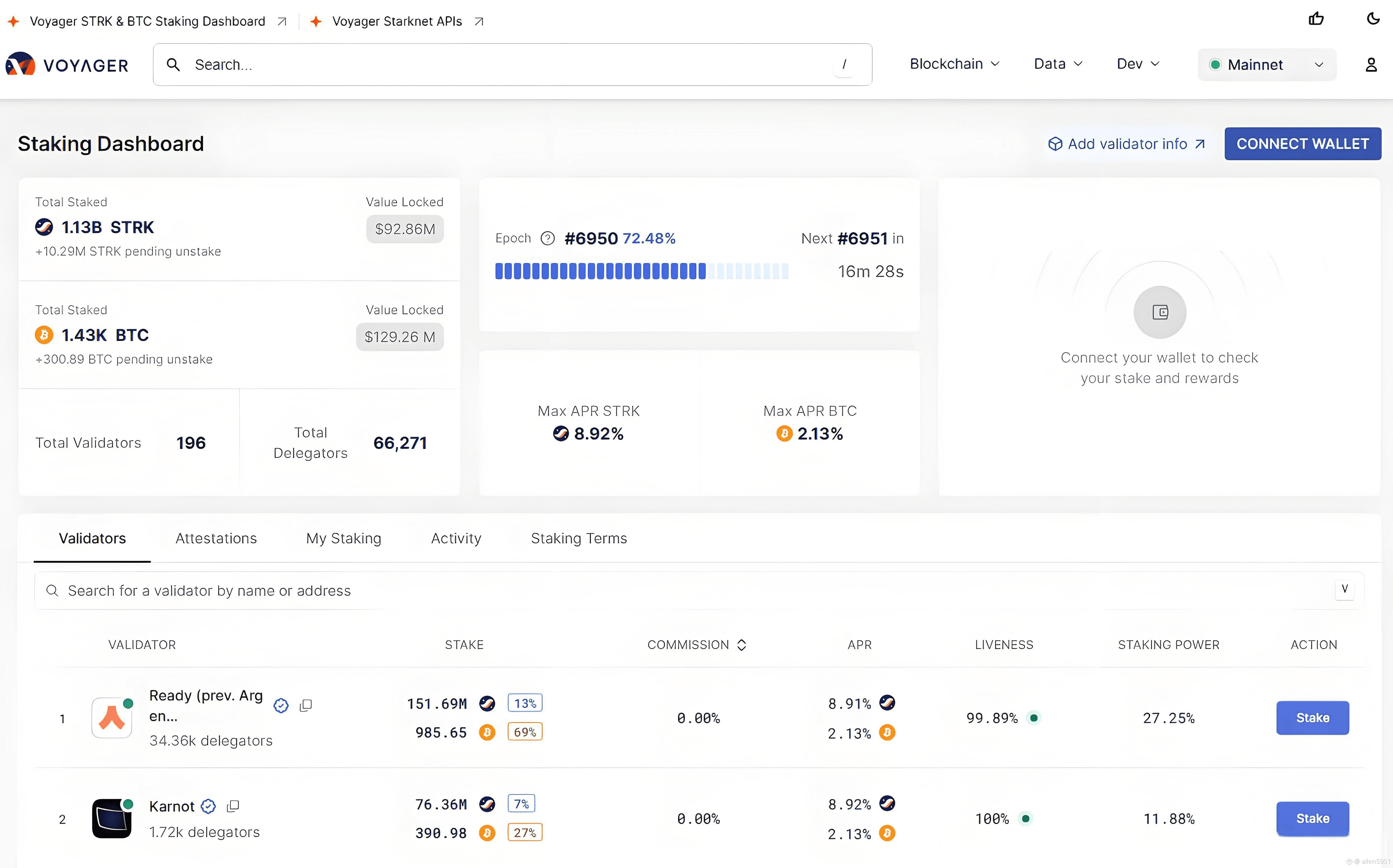 2024年11月,Starknet上线质押功能,持币者可通过质押 $STRK获得奖励;