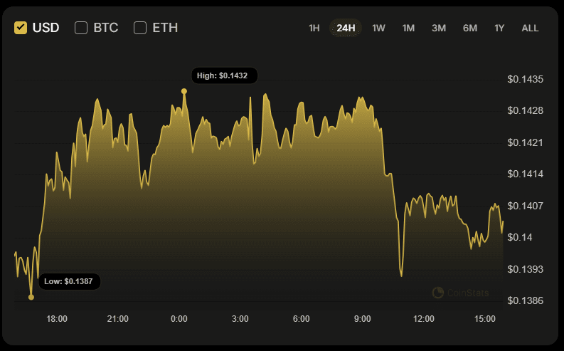O DOGE está sendo negociado a $0,1392 no momento da publicação.