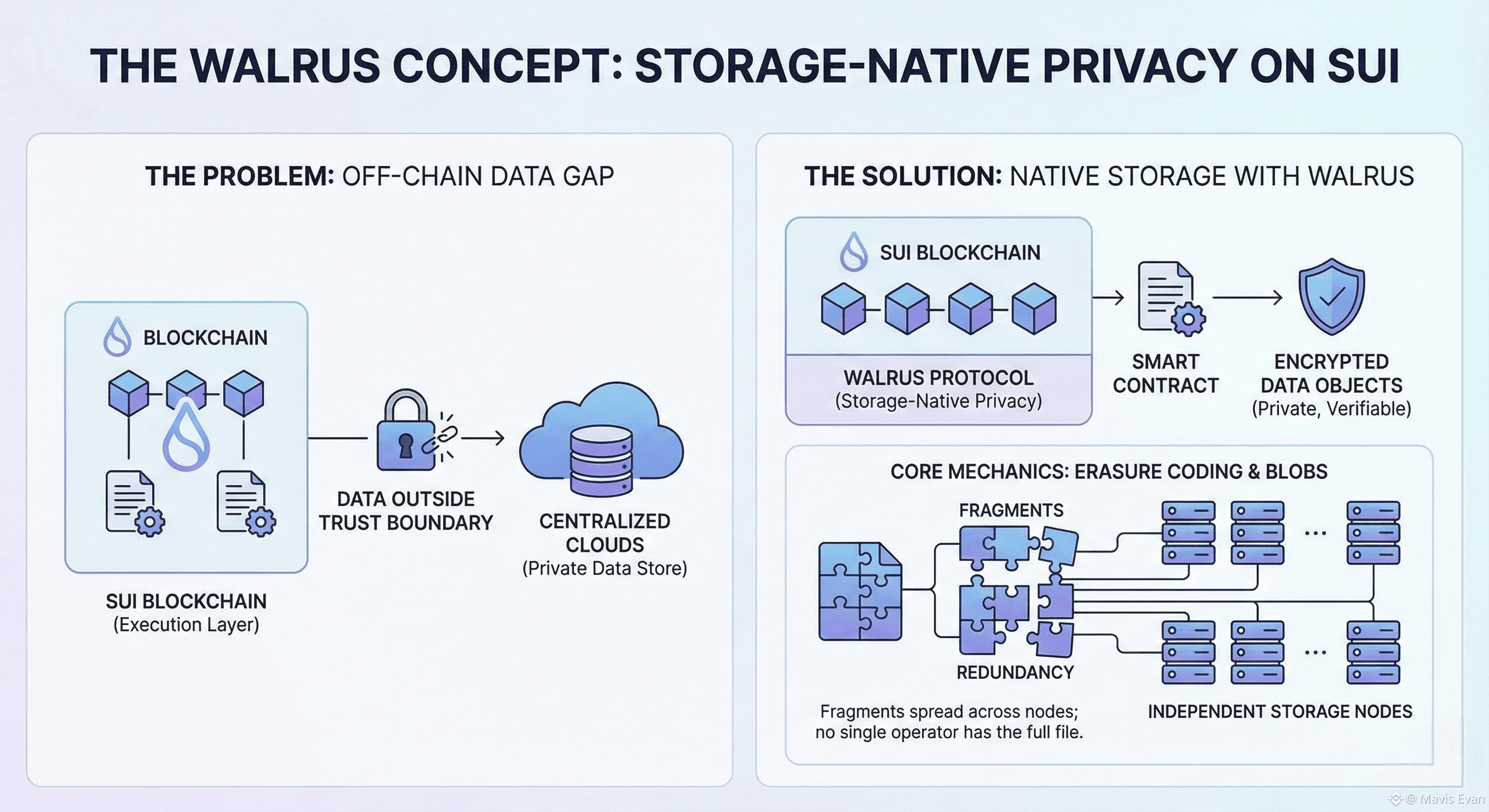 @Walrus 🦭/acc begins with a simple idea that is now becoming hard to ignore. Blockchains are no longer just ledgers for value transfer. They are turning into execution layers for complex applications that generate and depend on large volumes of private data. The moment social graphs, AI-driven tools, encrypted workflows, and enterprise use cases move on-chain, the limits of smart contract storage become visible. Walrus enters this shift as a data-first protocol built to work inside the Sui ecosystem rather than around it.