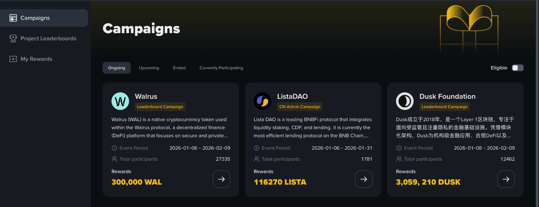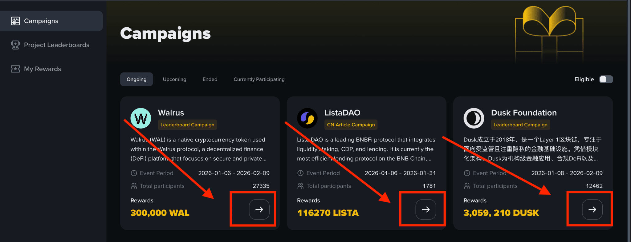 Participe de campanhas organizadas por projetos Web3