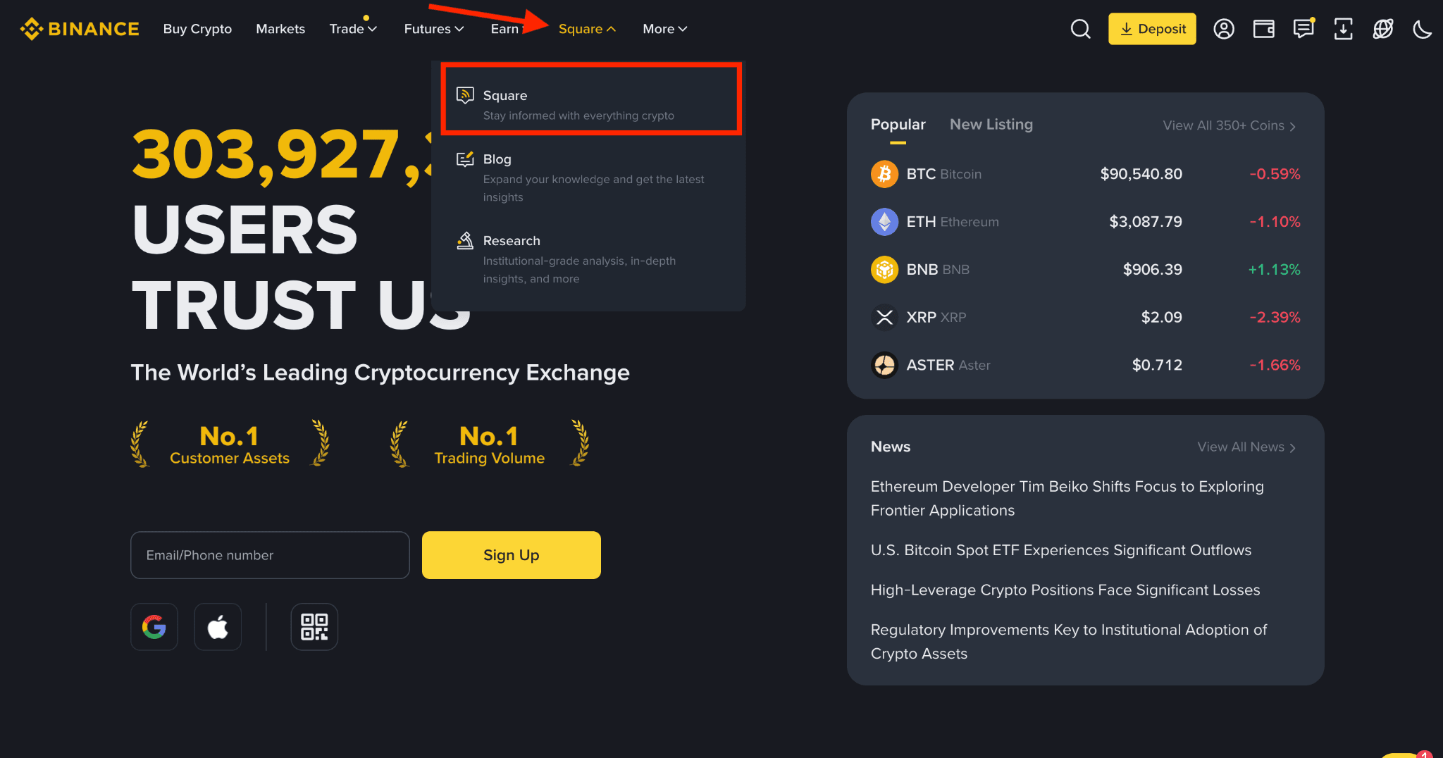 Abra o App Binance