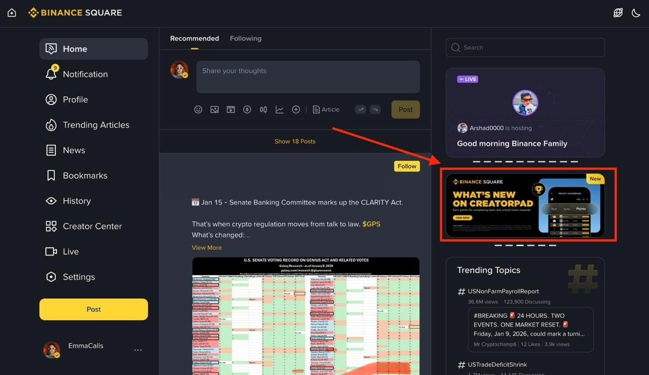 O CreatorPad é o sistema de monetização dentro do Binance Square.