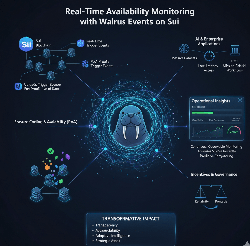 Os dados tornaram-se mais do que apenas números em um servidor—são a base da inovação moderna. Desde modelos de IA processando terabytes de dados de treinamento até plataformas DeFi gerenciando milhões de transações, a necessidade de armazenamento confiável e transparente nunca foi tão grande. Sistemas tradicionais nem sempre conseguem atender a essas demandas. Servidores centralizados podem ser rápidos, mas carecem de visibilidade, e quando ocorrem falhas, geralmente é tarde demais para reagir. O Walrus muda o jogo. Ao combinar armazenamento descentralizado com a arquitetura orientada a eventos do Sui, oferece uma forma de ver em tempo real a saúde dos dados—cada upload, cada fragmento, cada verificação—tornando o armazenamento não apenas uma utilidade, mas um sistema vivo e observável.