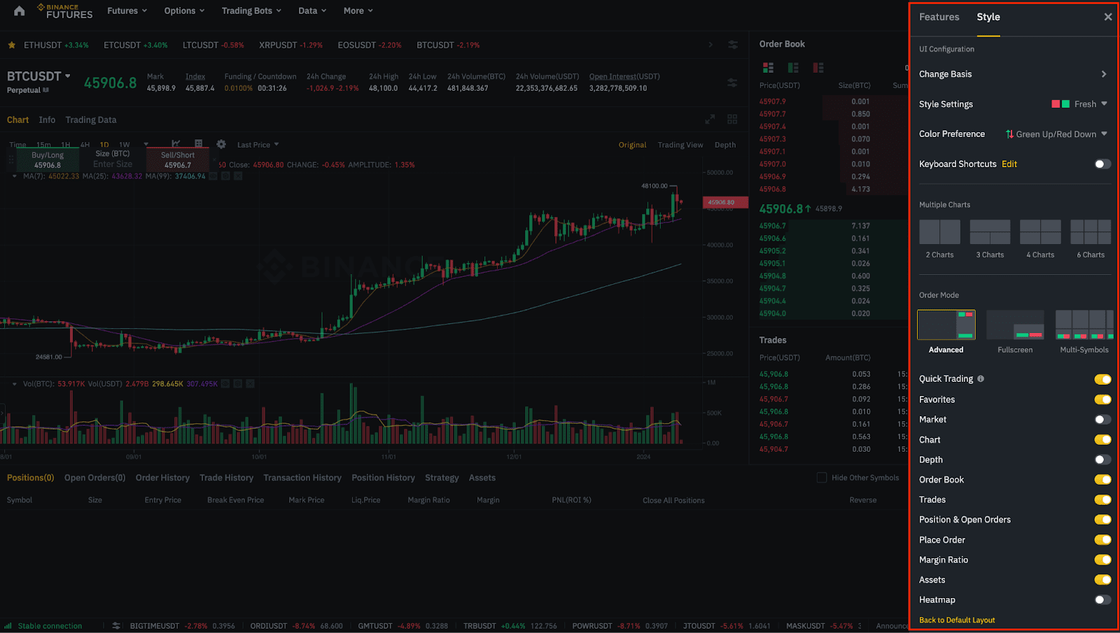 Exemplo de Negociação de Futuros (BTCUSDT Perpetual – Long 10x)