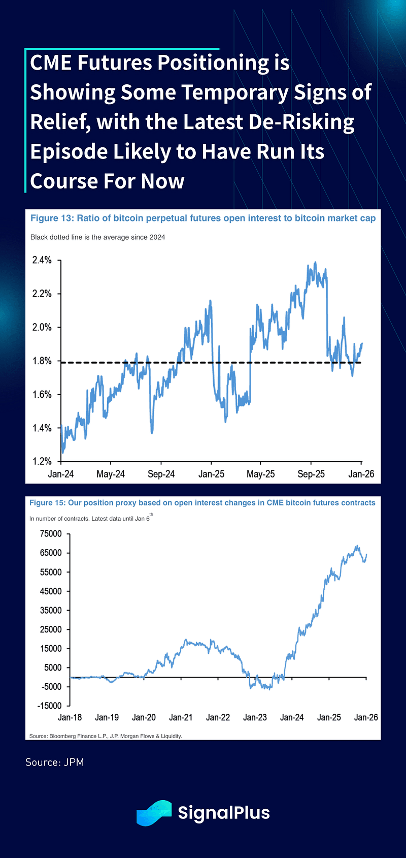 Em uma nota ligeiramente mais positiva, há alguns sinais de estabilização nas saídas, já que os futuros da CME estão mostrando uma pequena recuperação no interesse aberto (vs capitalização de mercado), com o proxy de posição de futuros também sugerindo que a última rodada de desrisco pode ter terminado em sua maior parte, por enquanto.