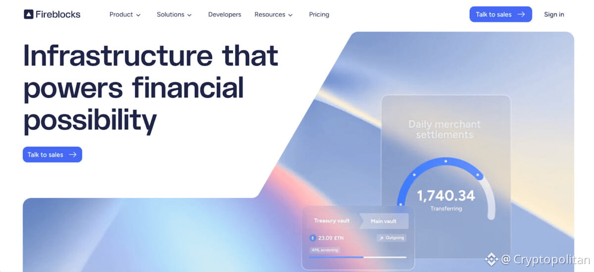 Fireblocks is a digital asset custody and transfer platform made for institutional and enterprise use. It is known for its multi-party computation (MPC) service and other advanced technologies. Unlike a traditional custodian, Fireblocks can be seen as more of an infrastructure provider.