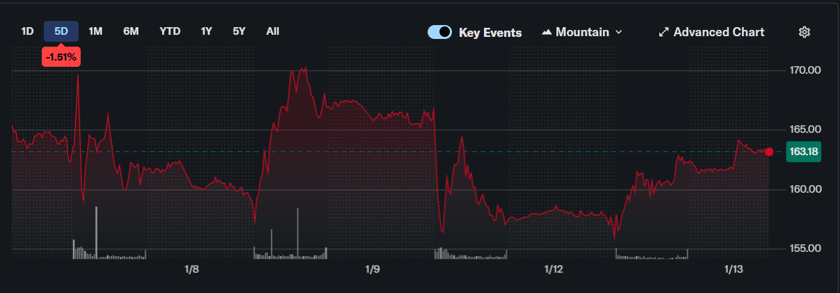 Se as ações da MSTR conseguirem se recuperar, podem potencialmente subir para $165. E se o momento ascendente continuar, pode alcançar $170 ou até mesmo $180.