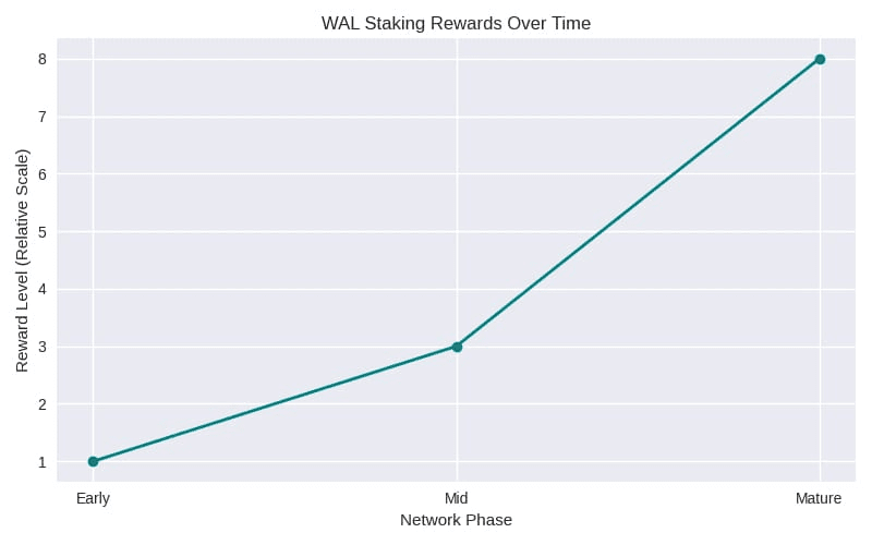 Agora, aqui está a parte sutil que os comerciantes costumam perder: as recompensas de staking do Walrus são projetadas para começar baixas e escalar ao longo do tempo.