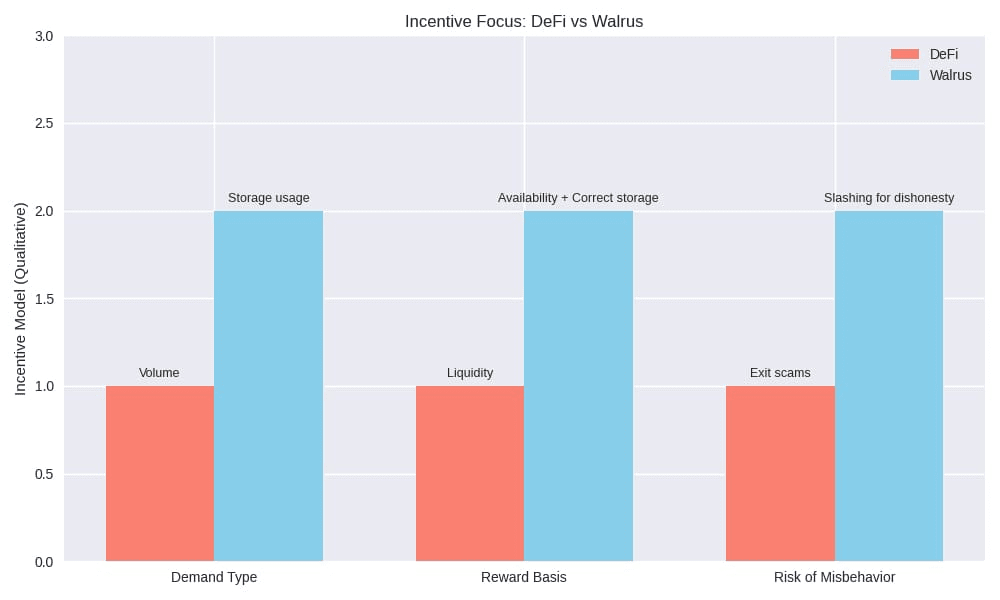 Esse “apenas se” é exatamente o que os incentivos estão protegendo. Seu jogo viverá ou morrerá com base na disponibilidade e desempenho de recuperação. Se o Walrus recompensar os nós simplesmente por prometer armazenar dados, os operadores tomarão atalhos e seus jogadores sentirão isso imediatamente. Se o Walrus recompensar os nós por disponibilidade comprovada e punir falhas, então a confiabilidade se torna uma estratégia de lucro.