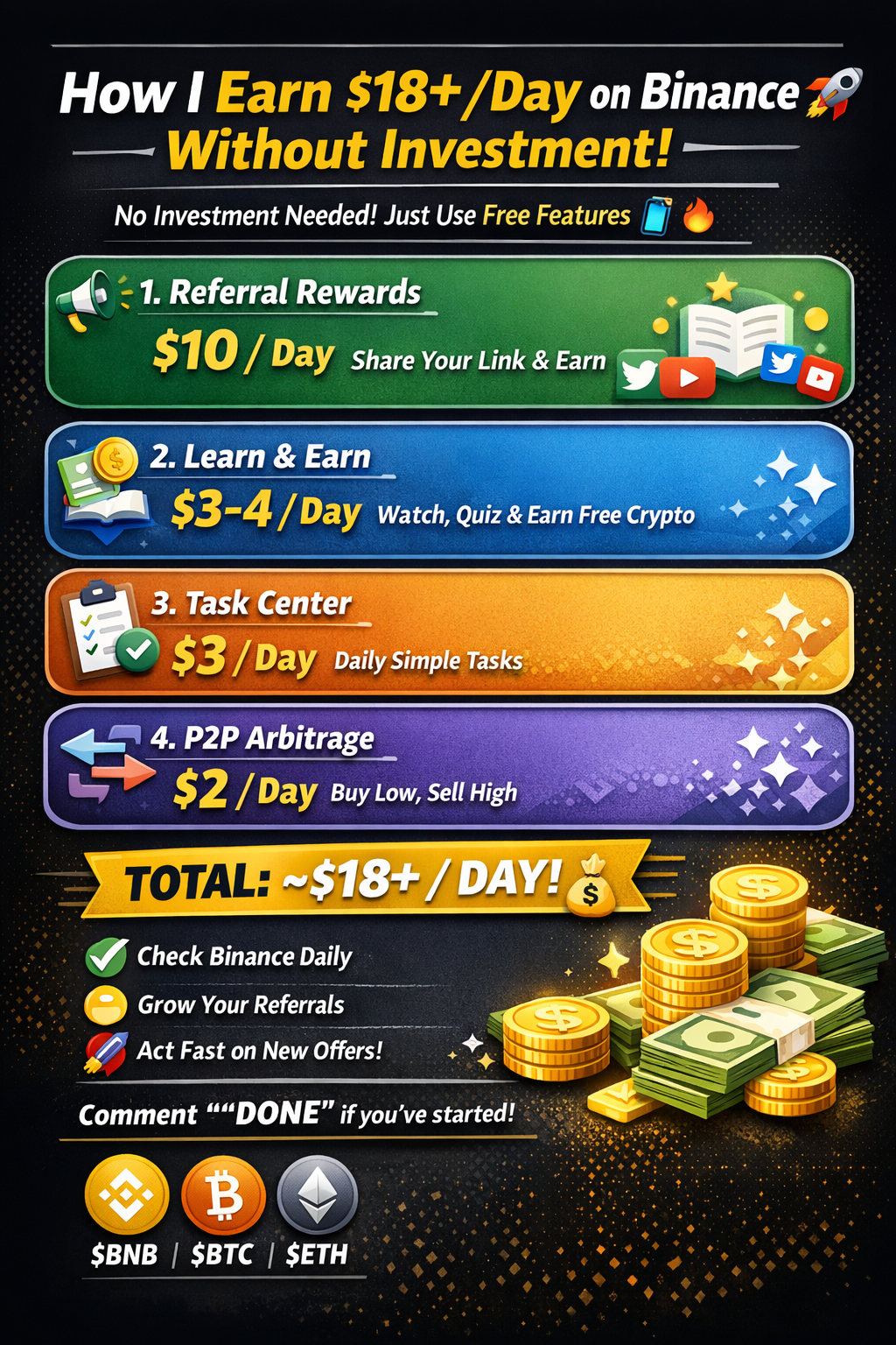 💸 Como Ganho $18+/Dia no Binance — Com ZERO Investimento 🚀
