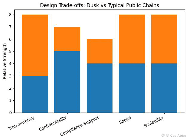 The chart above shows the difference clearly. Typical public blockchains force trade-offs between privacy, regulation, and decentralization. Dusk is designed to support all three at once.